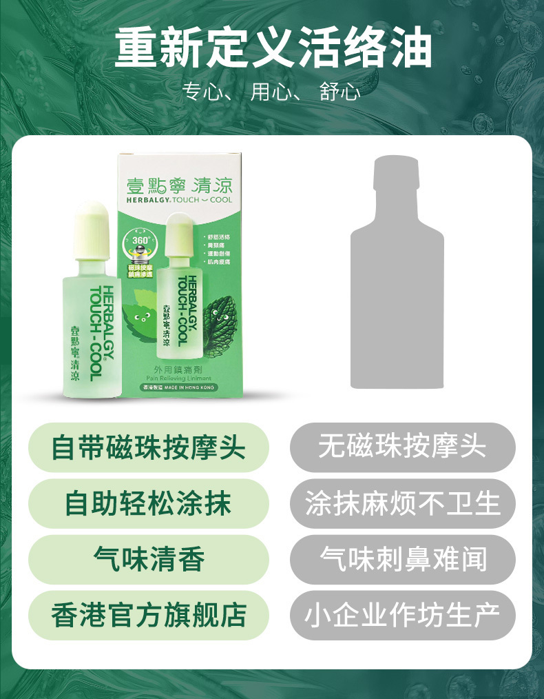 用磁珠按摩头于患处按压,找出不适处或痛点。将适量活络油涂于痛点上按压1-3分钟,每日2-3次